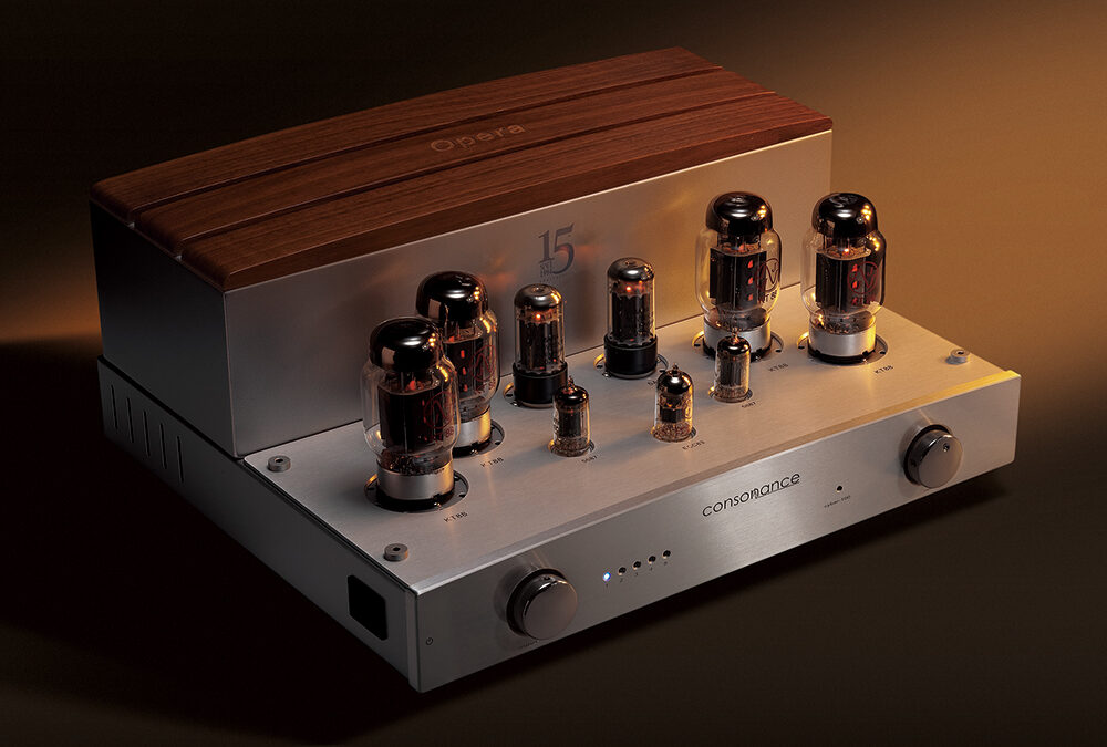 L’histoire de M. Liu commence par une start-up qui fabriqua un amplificateur à tube avec un certain succès, pour fonder ensuite Opera en 1994. Ce nouveau modèle de l’intégré Cyber100 est la réédition de celle sortie pour le 15ème anniversaire de la marque, apportant une amélioration significative aux versions successives de la série 100. Solidement construit en mariant harmonieusement métal et bois, il prouve que Consonance sait fabriquer des appareils de haute qualité : on se souvient du très bon 300B push-pull M100S. Mais c’est la vénérable tétrode à faisceau dirigé KT88/6650 qui est ici à l’honneur, avec beaucoup de savoir-faire.